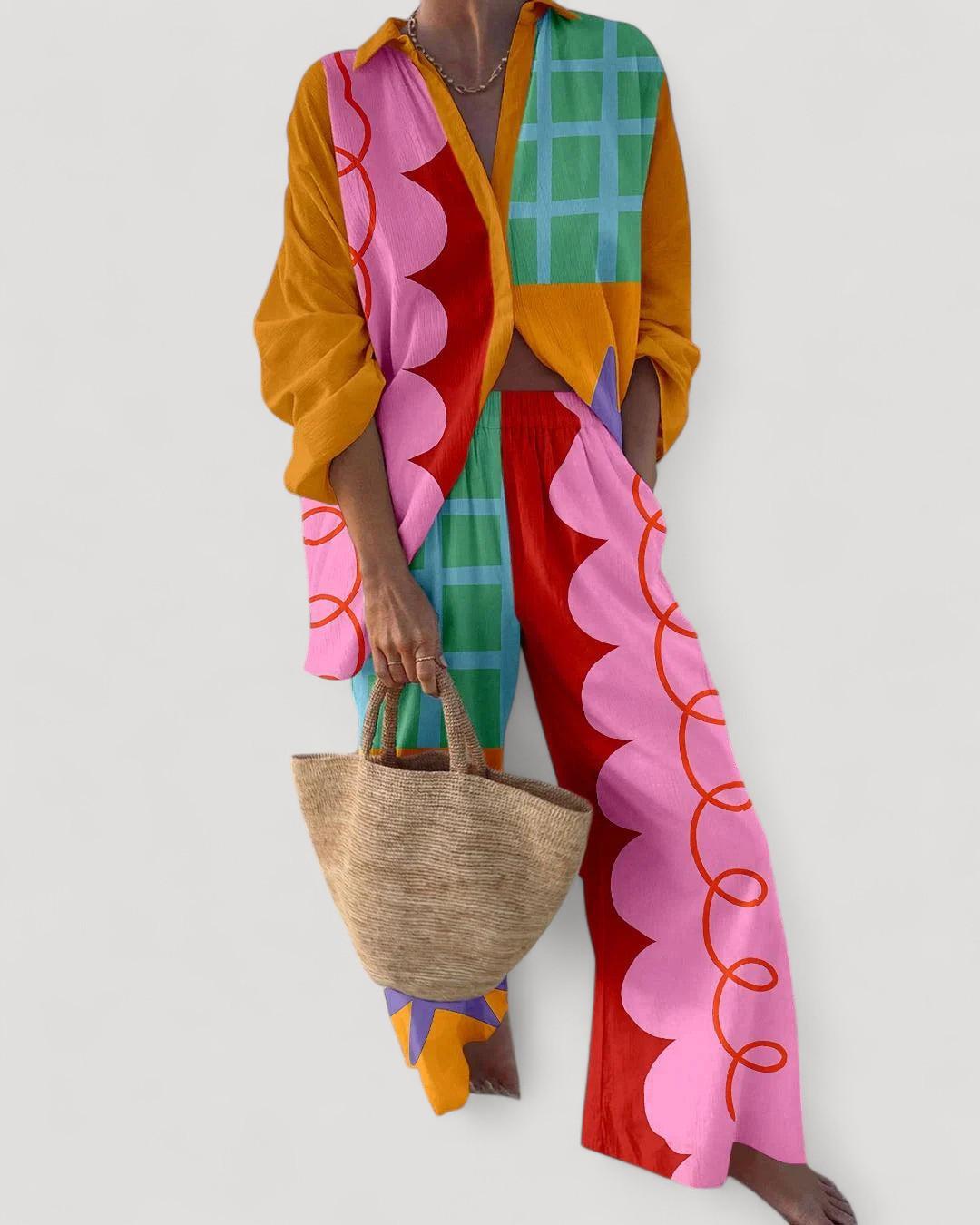 Arianna™ yhdistää pellavan keveyden elävään painatukseen, joka tuo valoisuutta ilmeeseesi. Ihanteellinen niille, jotka rakastavat erottua tyylillä ja mukavuudella, tämä setti on täydellinen kumppani kuumina päivinä, niin lomalla kuin kaupungissa.