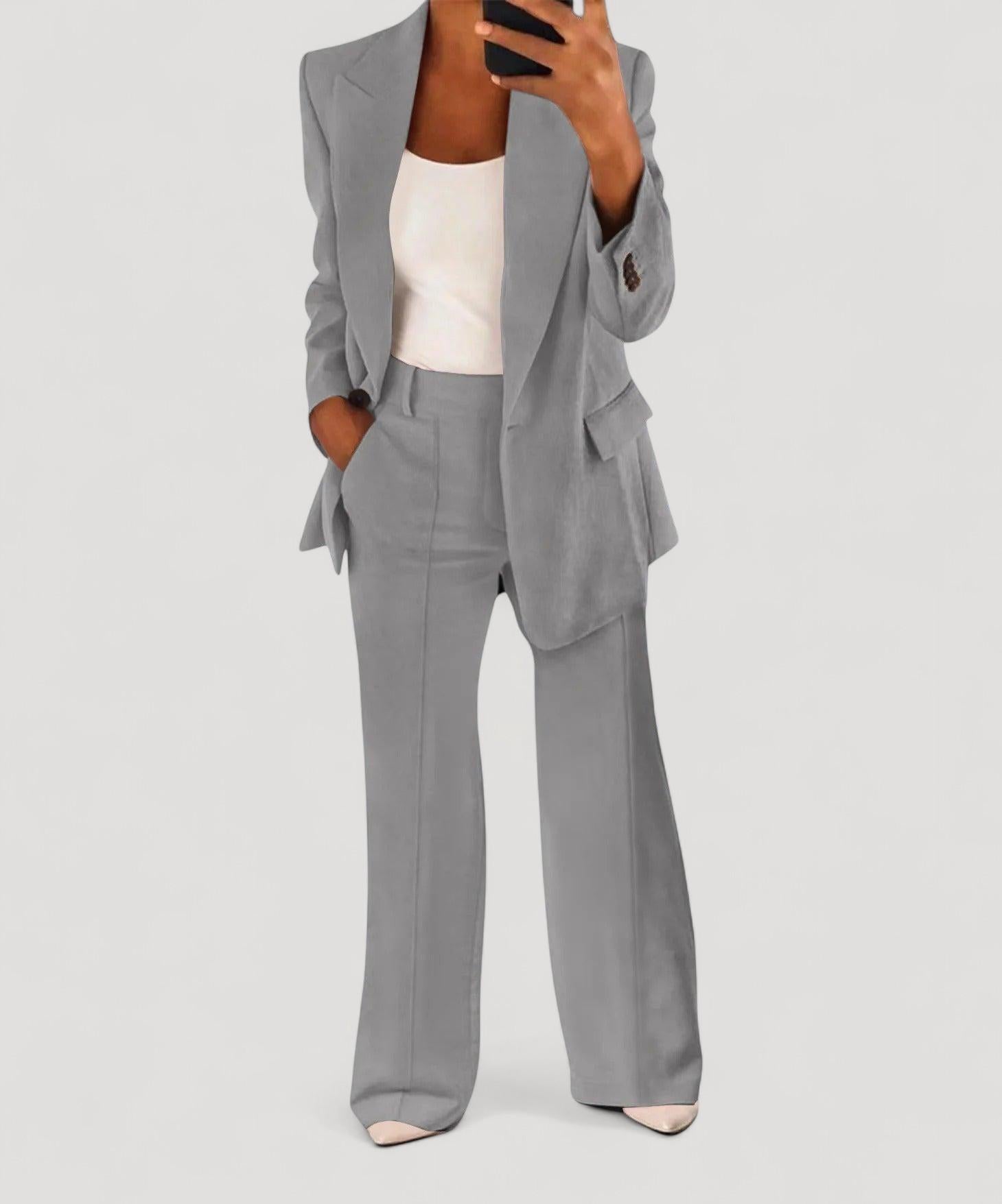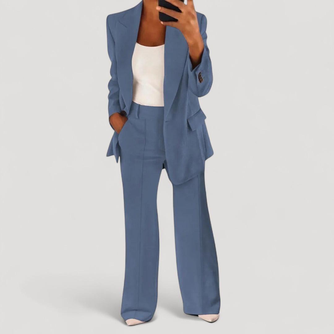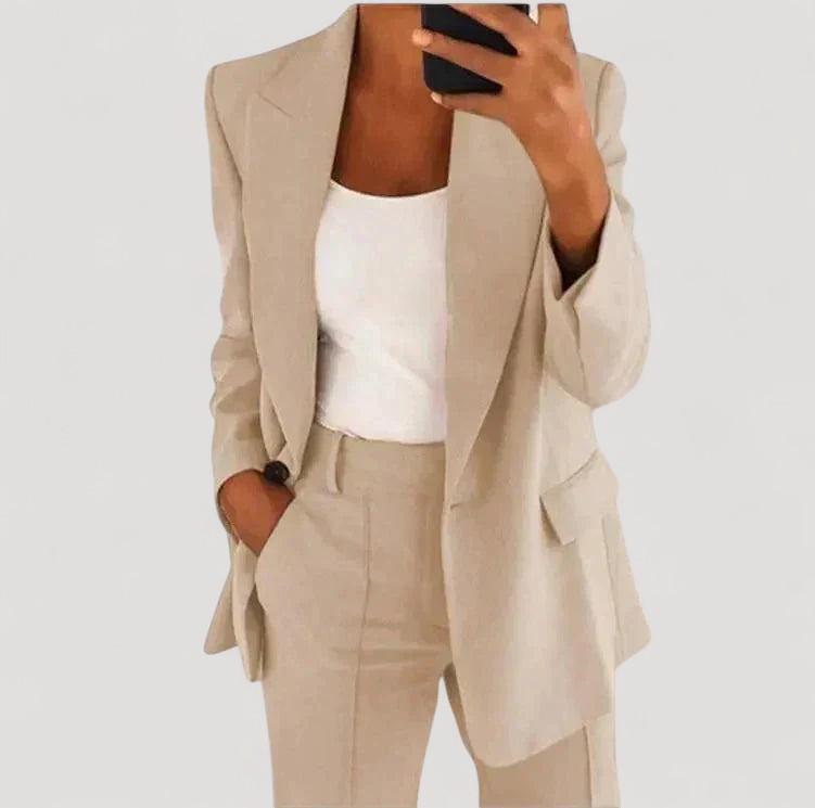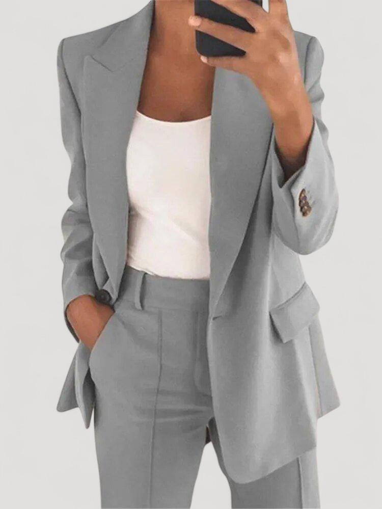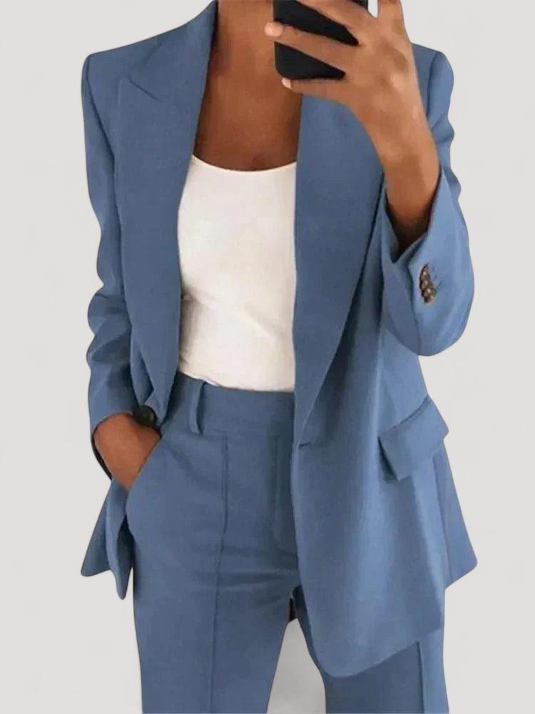 Helppo yhdistää: Tutustu vaivattomaan mahdollisuuteen yhdistää takki ja housut muihin vaatteisiin, tarjoten sinulle loputtomasti tyylivaihtoehtoja. Ajaton eleganssi: Kohota vaatekaappiasi meidän 2-osaisella naisten puvulla, joka lisää tyylitaituruutta mihin tahansa asusteeseen.