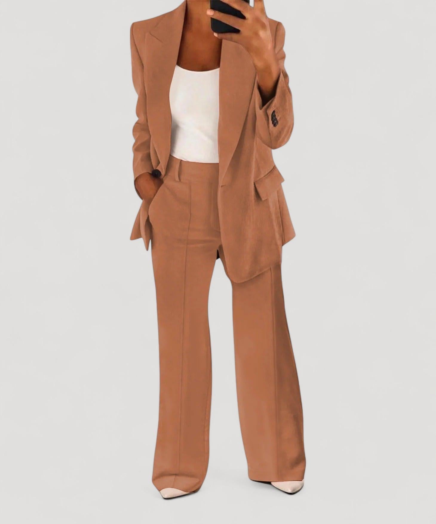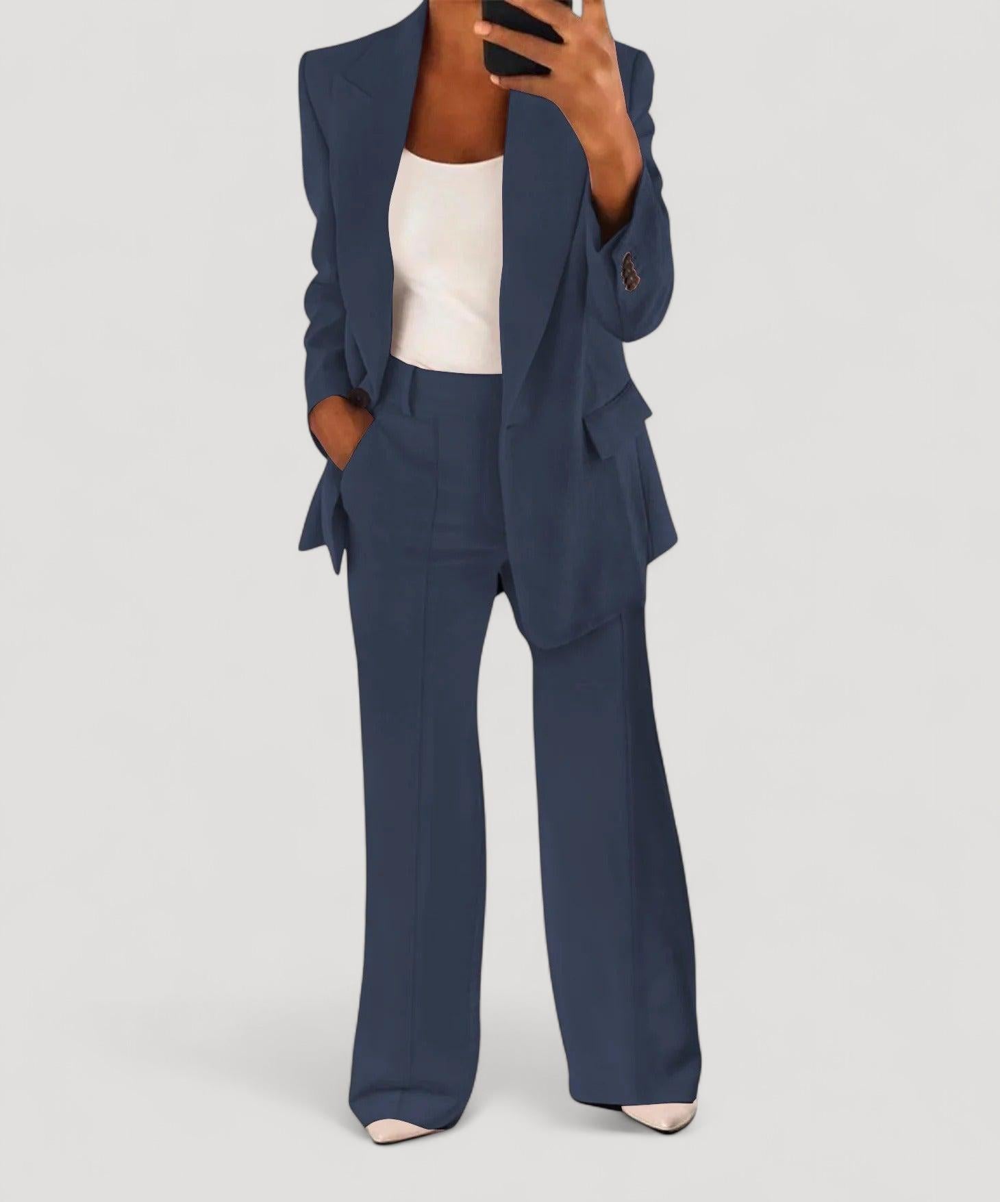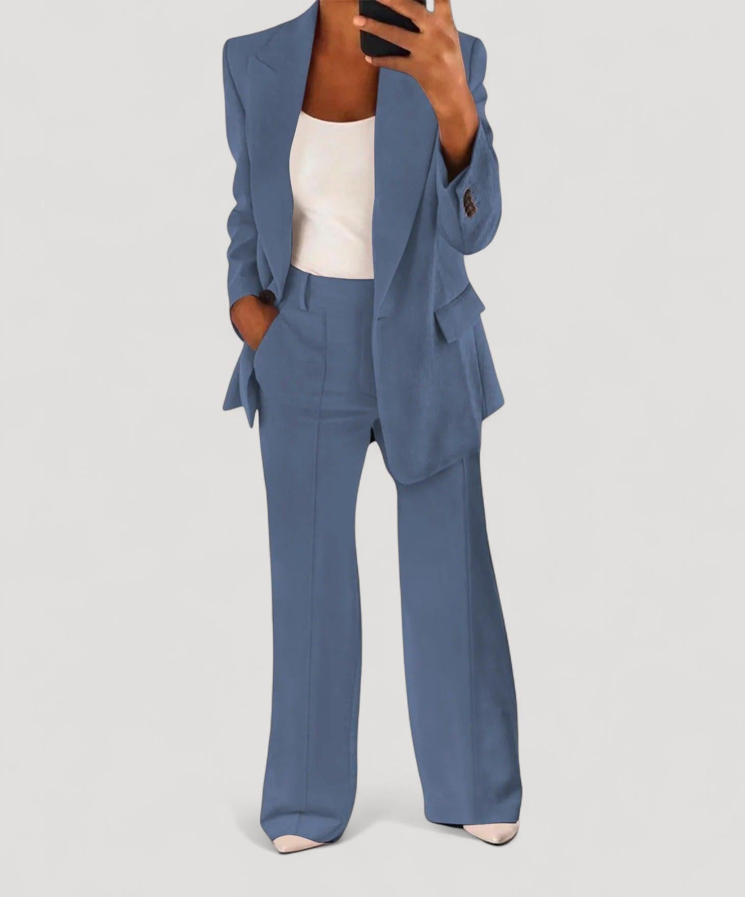 Helppo yhdistää: Tutustu vaivattomaan mahdollisuuteen yhdistää takki ja housut muihin vaatteisiin, tarjoten sinulle loputtomasti tyylivaihtoehtoja. Ajaton eleganssi: Kohota vaatekaappiasi meidän 2-osaisella naisten puvulla, joka lisää tyylitaituruutta mihin tahansa asusteeseen.