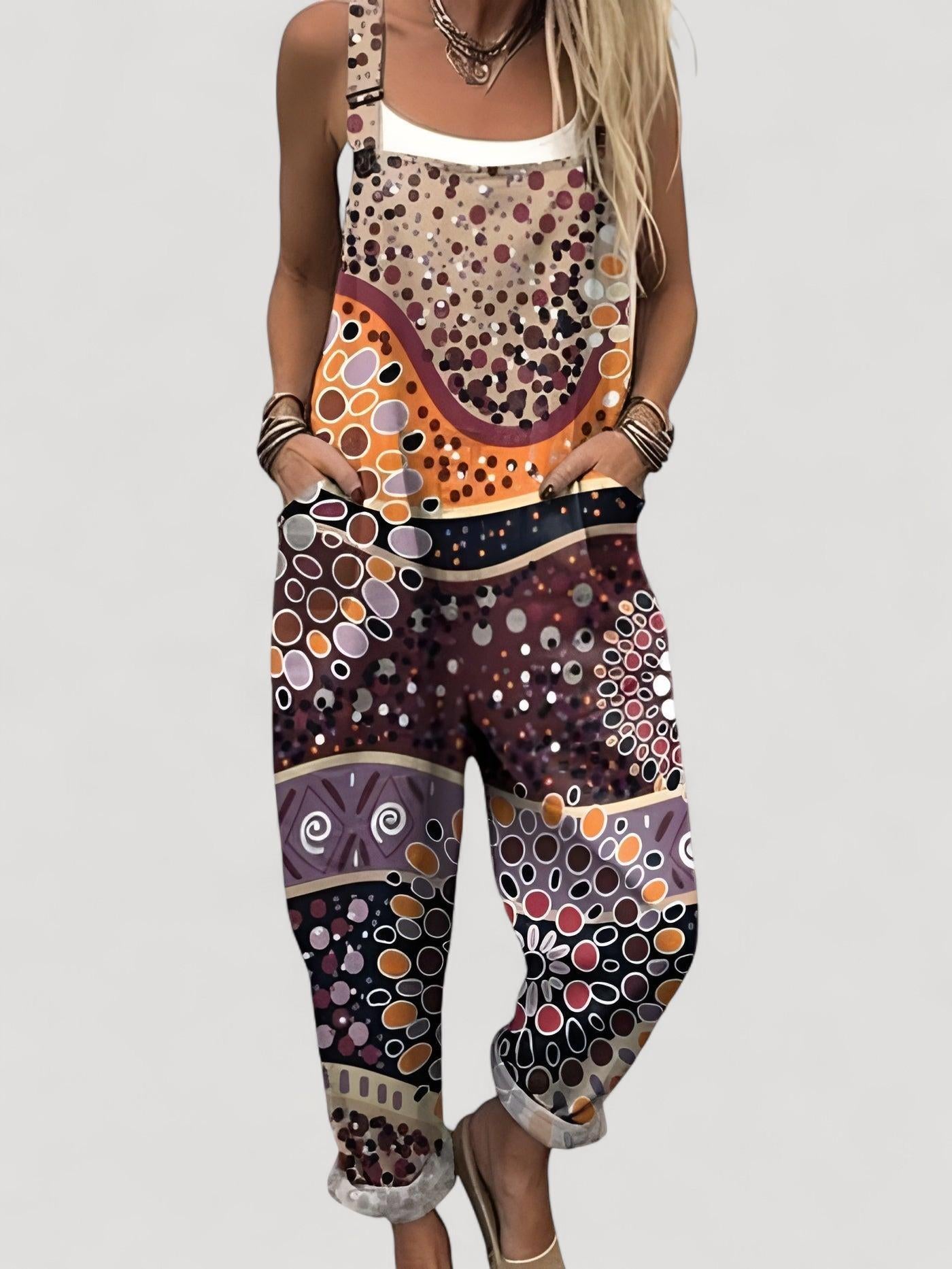 Aukje™ | Geometrisella kuviolla ja taidepainatuksella varustettu naisten haalari, vintage, leveät lahkeet