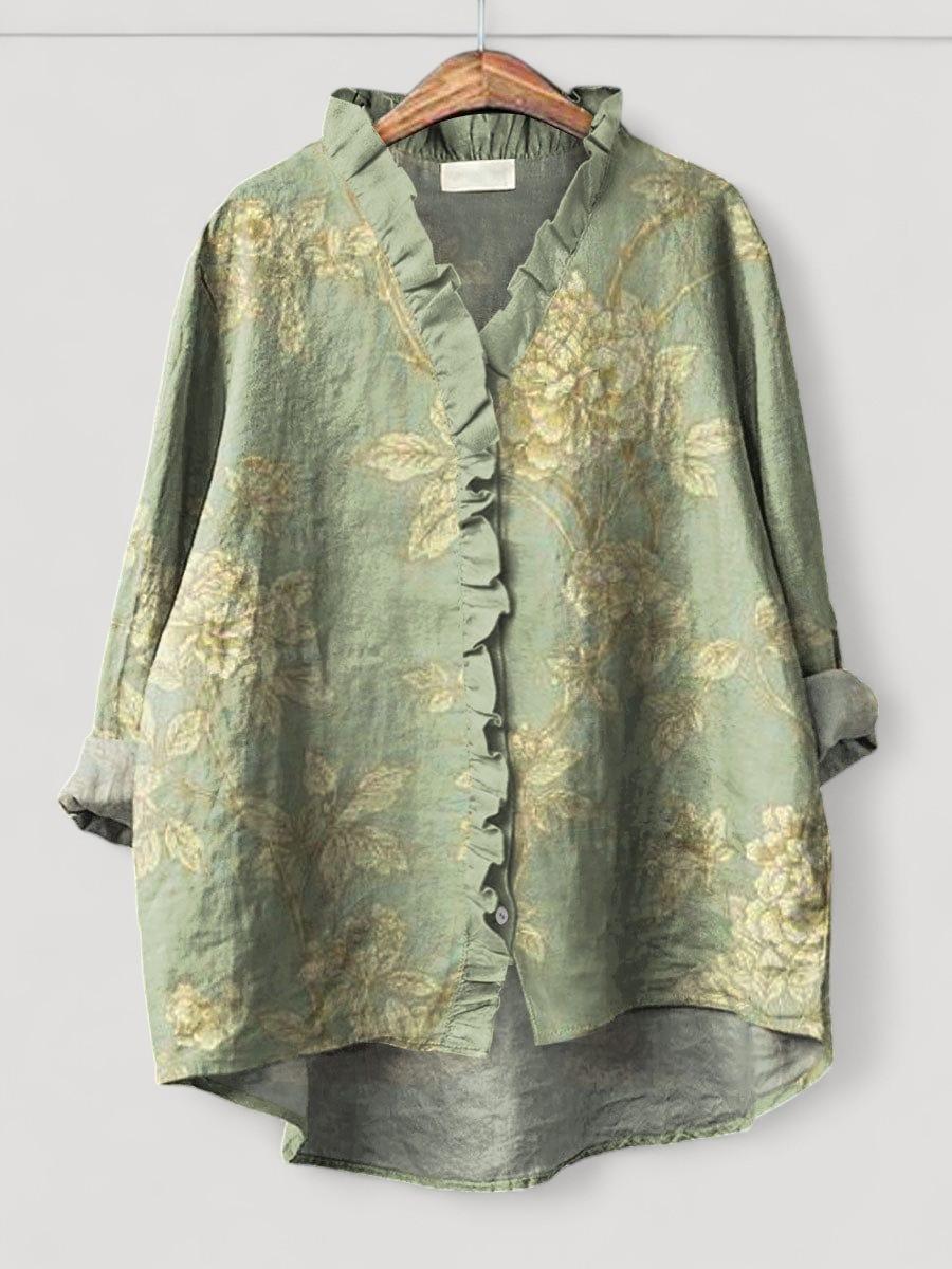 • Naisellinen kaula-aukko pehmeällä röyhelöreunalla