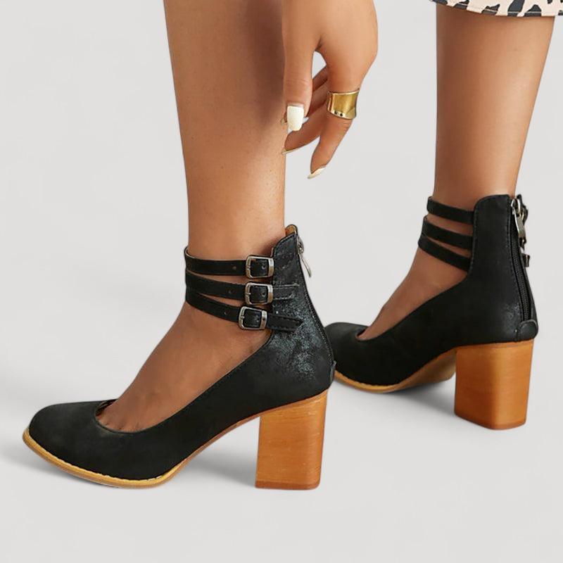 • Suunnittelu: Liukas pinta modernilla paksulla korkokannalla ja trendikkäällä nilkkaremillä.