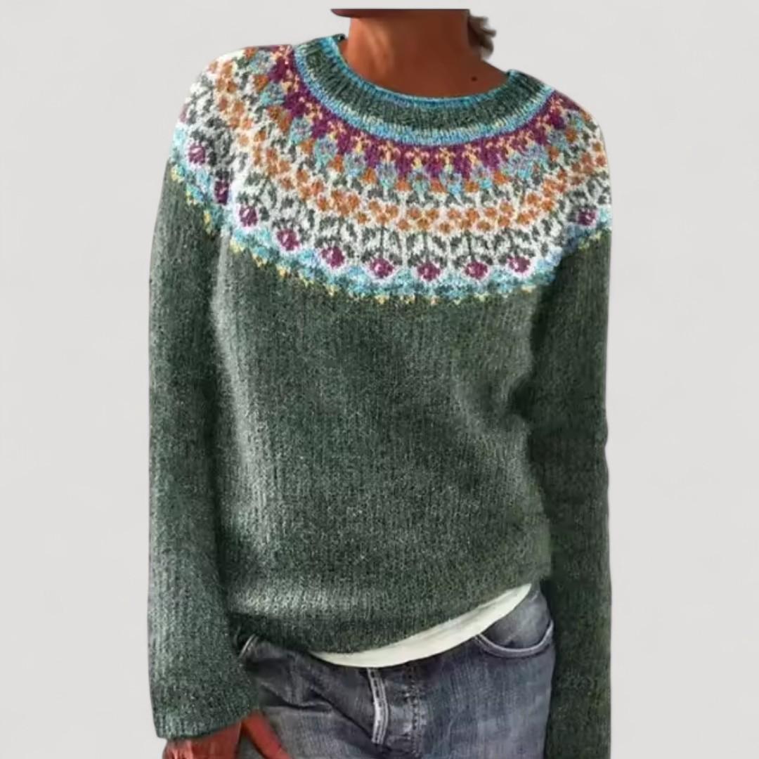 • Tyylikäs ja toiminnallinen: Monivärinen skandinaavinen kuvio antaa jokaiselle asulle heti luonteen, samalla kun neule on mukava päivittäiseen käyttöön.