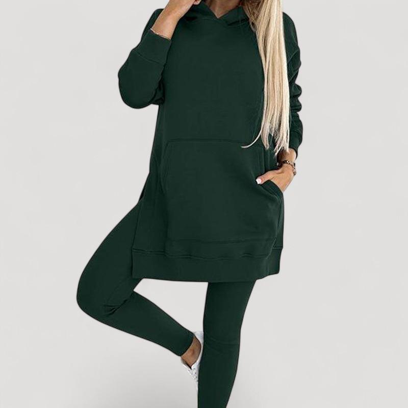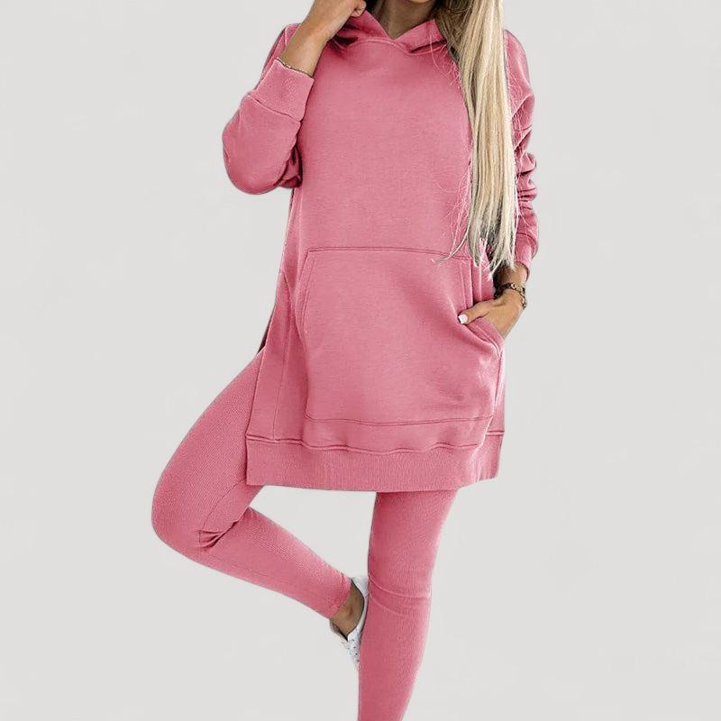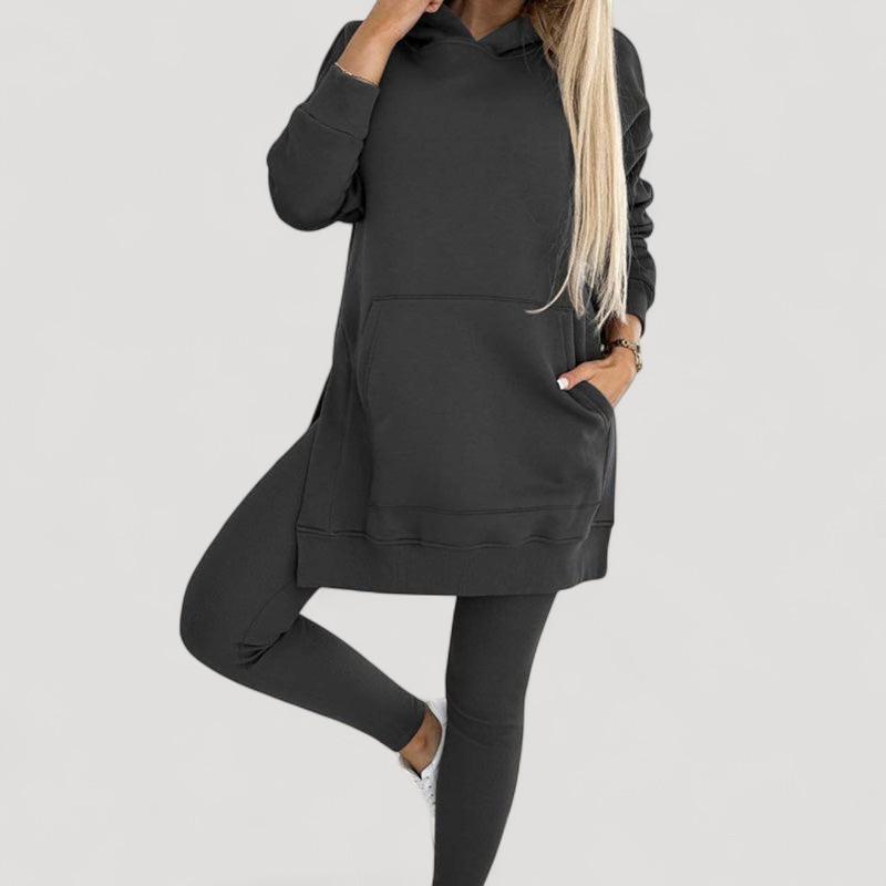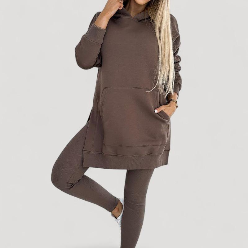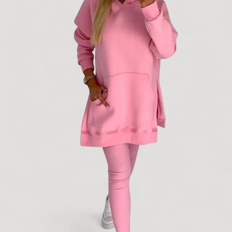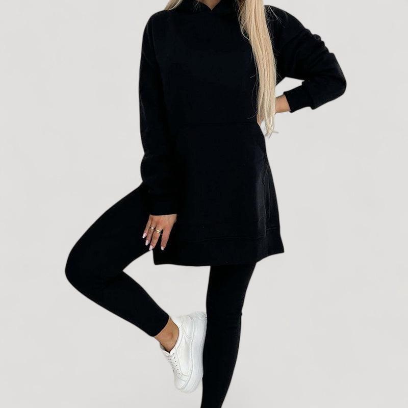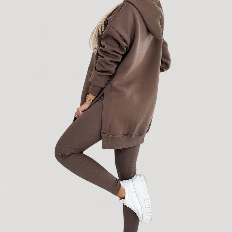 Löydä täydellinen setti jokaiseen tilaisuuteen! Huppari on valmistettu pehmeästä kankaasta, joka tarjoaa välitöntä mukavuutta, kun taas venyvät legginsit tarjoavat tyylikkään ilmeen ja täydellisen istuvuuden. Älä jätä väliin tätä mukavuuden ja tyylin yhdistelmää!
