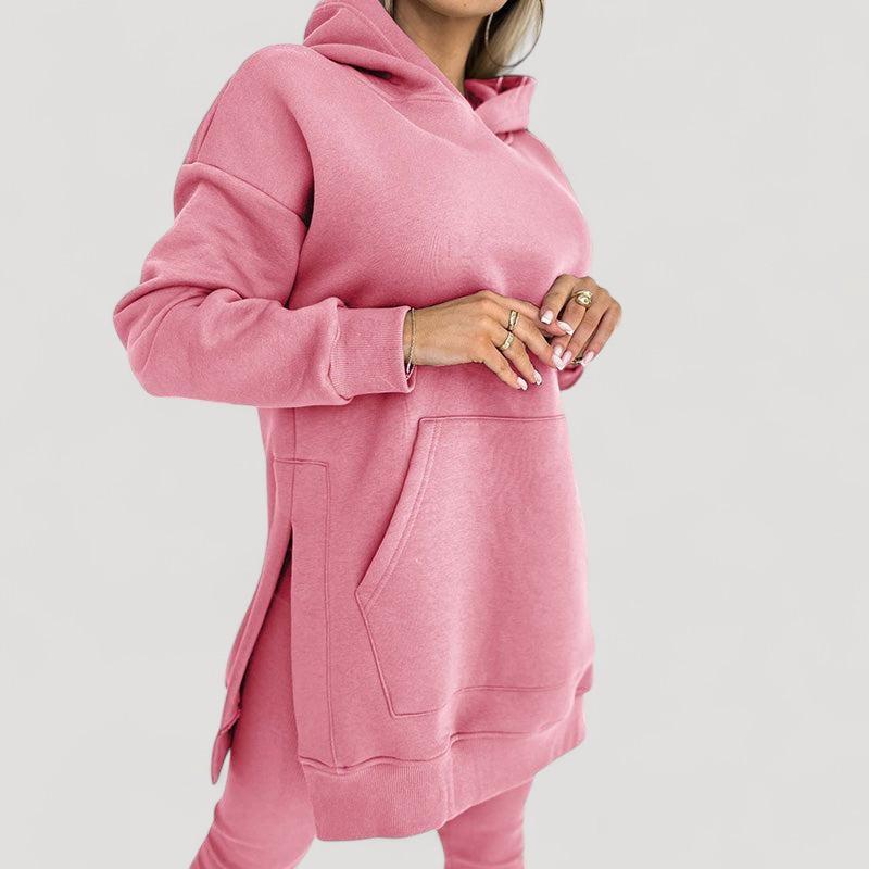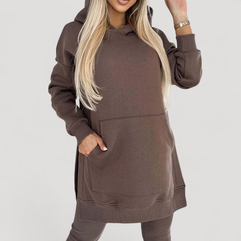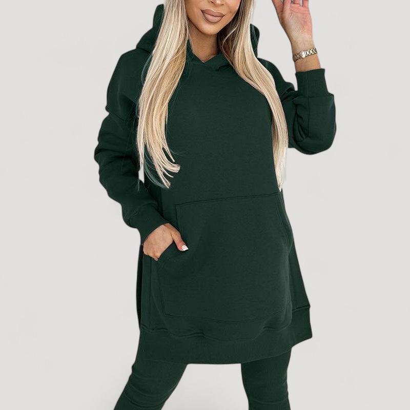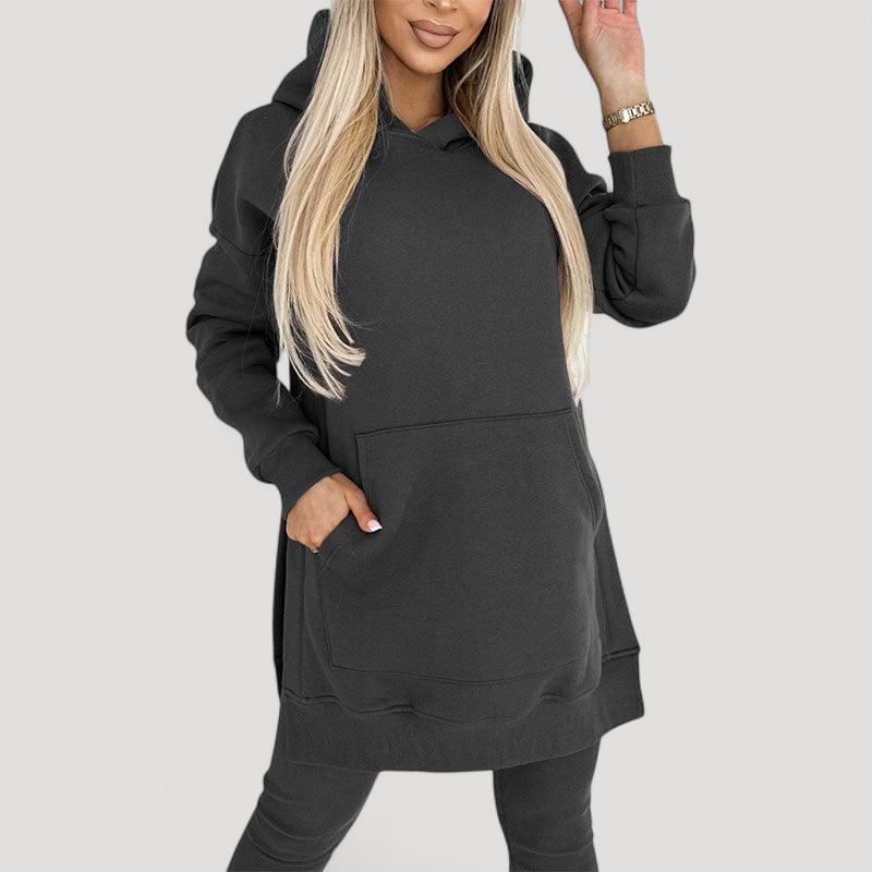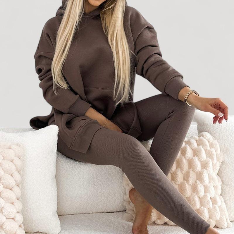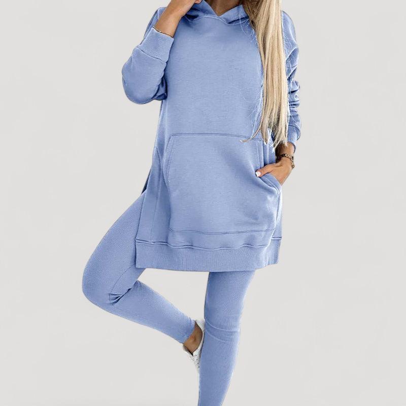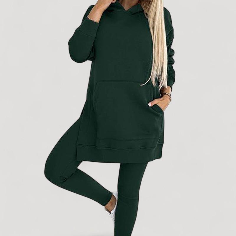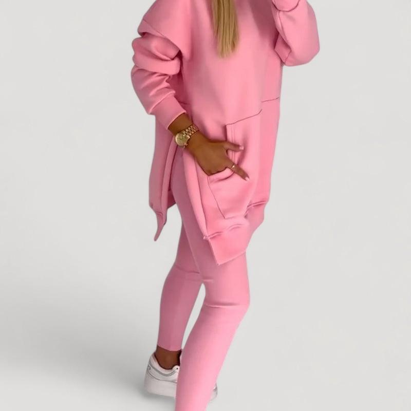 Löydä täydellinen setti jokaiseen tilaisuuteen! Huppari on valmistettu pehmeästä kankaasta, joka tarjoaa välitöntä mukavuutta, kun taas venyvät legginsit tarjoavat tyylikkään ilmeen ja täydellisen istuvuuden. Älä jätä väliin tätä mukavuuden ja tyylin yhdistelmää!