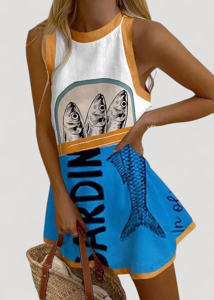 Giorgia™ yhdistää intensiivisen sinisen printin lyhyeen ja ilmavaan muotoiluun, luoden naisellisen ilmeen, joka on täydellinen kesään. Olipa kyseessä brunssi, kävely tai ilta ystävien kanssa, tämä minimekko sopii tyyliin ja keveyteen.
