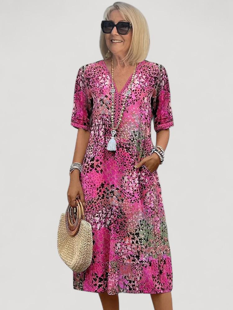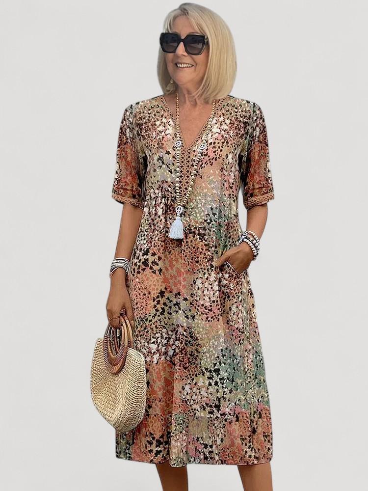 Giulia™ – Tyylikäs Midi-mekko on täydellinen vaate niille, jotka haluavat ilmaista naisellisuutta ja tyyliä vaivattomasti. Sen virtaava siluetti, V-pääntie ja elävä printti ilmentävät täydellistä tasapainoa modernin ja ajattoman eleganssin välillä. Ihanteellinen muodollisiin tilaisuuksiin, juhliin tai rentoihin ulkoiluihin, Giulia™ on välttämätön vaate kaikille, jotka haluavat loistaa joka tilaisuudessa.