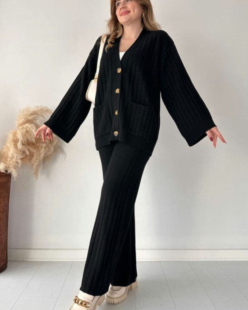 Korosta luonnollista kauneuttasi Lariana™ – Kaksiosaisella Rento Neuleasulla ja elä jokainen hetki vaivattomasti eleganssilla ja mukavuudella!