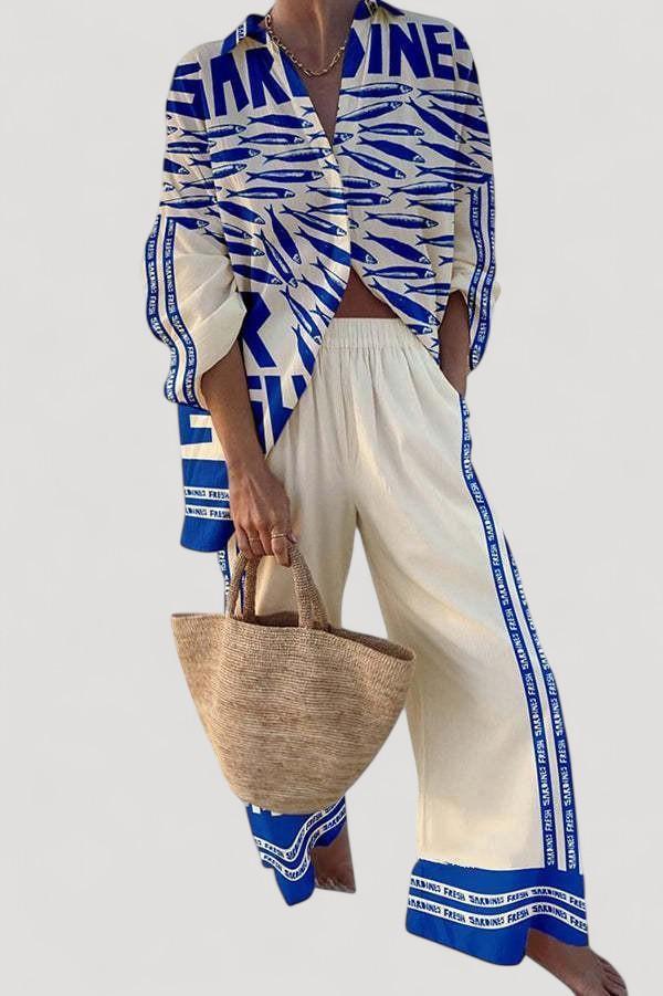 Lia™ yhdistää yksinkertaisuuden sinisissä sardiiniprinteissä, jotka ovat saaneet inspiraationsa mereltä. Täydellinen rantapäiville, kaupunkikävelyille tai italialaisille lomille, se on trendikäs vaate.