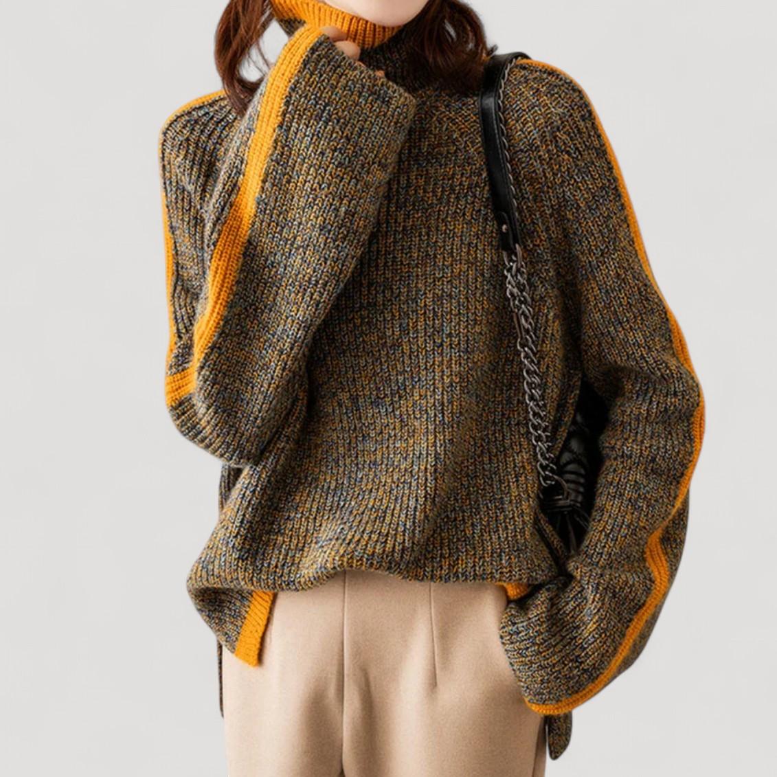 Hienostuneesti viimeistelty: Rohkeilla ja kirjavailla yksityiskohdilla varustettu Sonia-neule sopii vaivattomasti niin rentoihin kuin muodollisiin tilaisuuksiin, vahvistaen sen asemaa ajattomana vaatekappaleena.