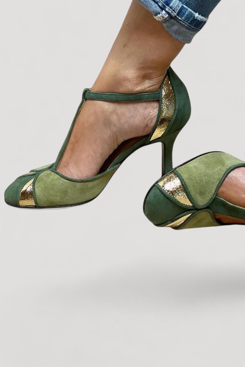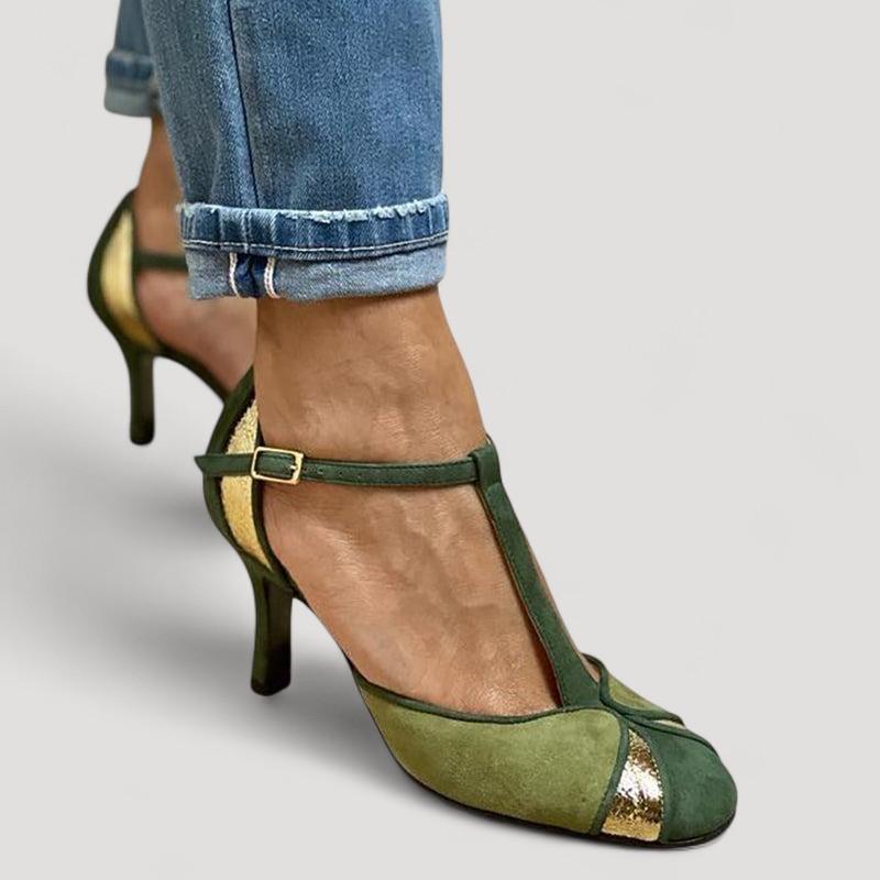 Taviana | Patches-korkokengät T-nauhalla ja suljetulla varvastyöllä