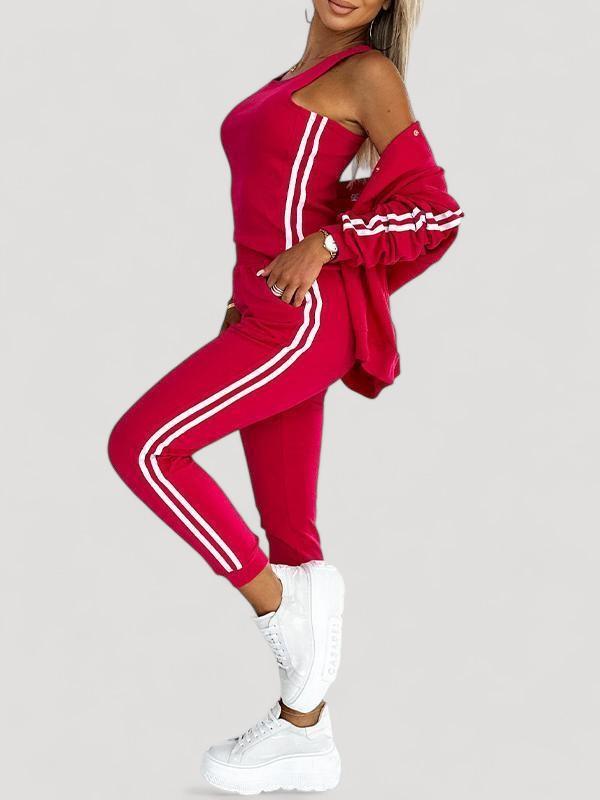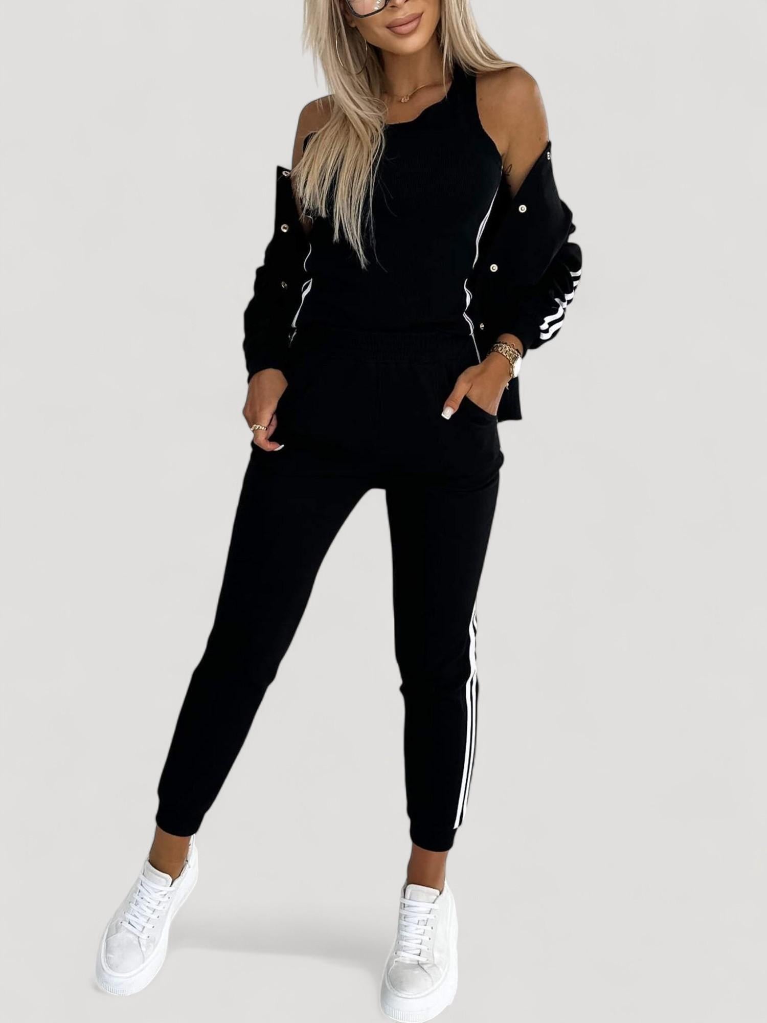 Inspiroituneena syksyn/talven athleisure-trendeistä, Yasmine™ - Baseballtakki ja 3-osainen Housusetti on täydellinen sekoitus nykyaikaista mukavuutta ja vaivattomuutta. Tämä koordinoitu setti sisältää retrotyylisen baseballtakki, corsettiselkäisen topin ja kapeat urheiluhousut, luoden hienostuneen ja rennon ilmeen, joka sopii joka tilaisuuteen. Täydellinen niille, jotka etsivät tyylikästä mutta mukavaa ilmettä, Yasmine™ on pakollinen hankinta niille, jotka rakastavat yhdistää urheilullisia ja muotielementtejä hienostuneesti.