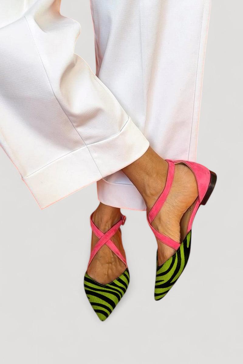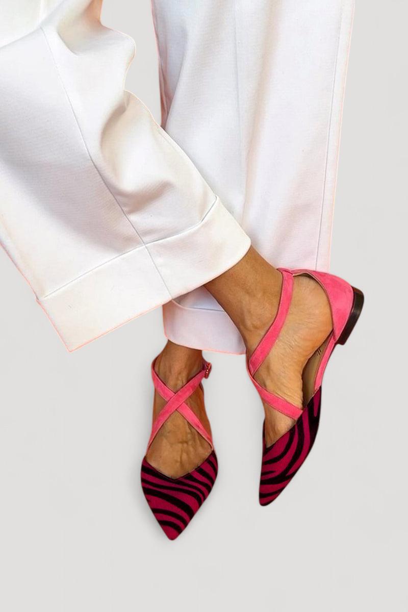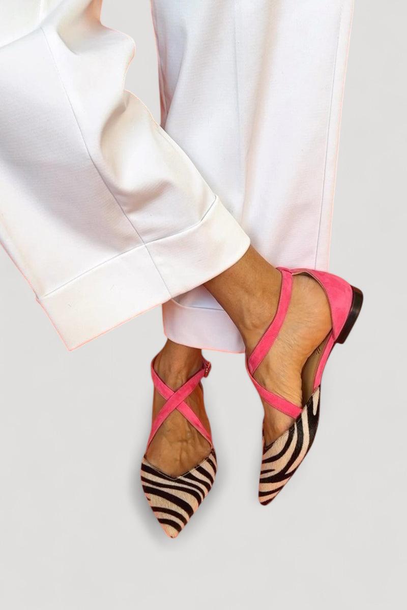Zarella | Litteät sandaalit, joissa on seeprakuosi ja ristiriimu nilkassa